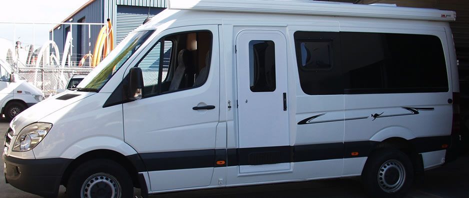 We also do custom pop-top roof conversions for Mercedes Sprinters, Toyota Hi Ace, VW Transporter, and Hyundai iLoad. We can supply all appliances, fittings and equipment for motorhomes including solar equipment. Complete Internal fit-out and design for motor home conversion to your requirements, including upholstery and canvas work
