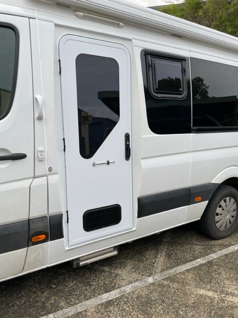 No more annoying opening and closing of sliding doors in the middle of the night. This replaces the sliding door with a fibreglass panel and caravan-style security door fitted with triple lock and flies screen, with a multi-brush buffer seal to keep insects out. It will fit the post-2007 Mercedes Sprinter and VW Crafter. All you need to do is drop the vehicle off and make the decisions on wiring and any other specific requests, and it will be ready for pick up within 5 days in a clean and tidy state, ready for your fit-out to begin.